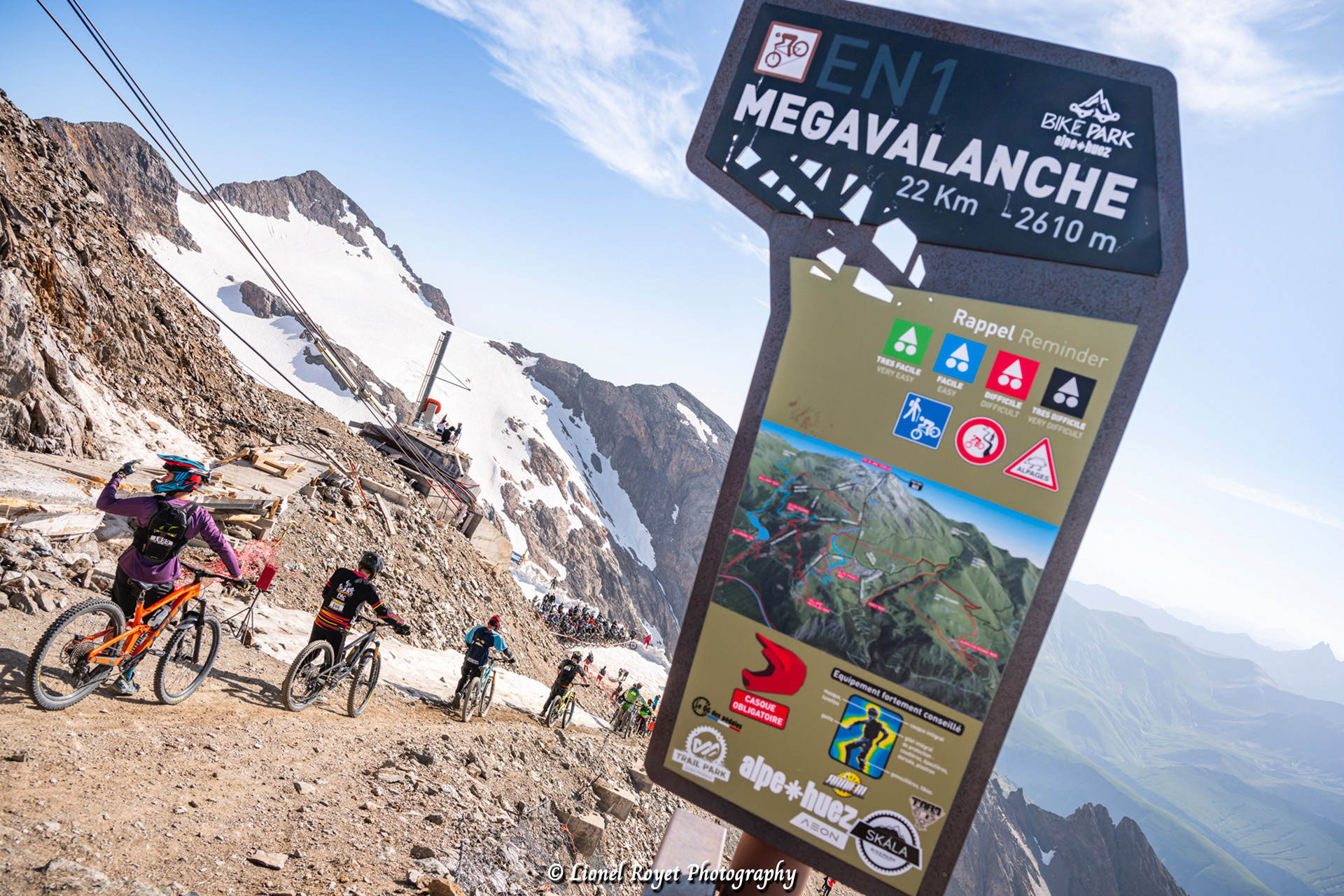 Depuis 1995, des milliers de vététistes venus des quatre coins du globe se retrouvent à l’Alpe d’Huez pour une course unique : la Mégavalanche ! Son départ en Mass Start à 3330 mètres d’altitude sur le glacier, et son arrivée à Allemond, 2600m plus bas font de cette DH Marathon la course la plus longue et la plus folle du monde. www.ucc-sportevent.com